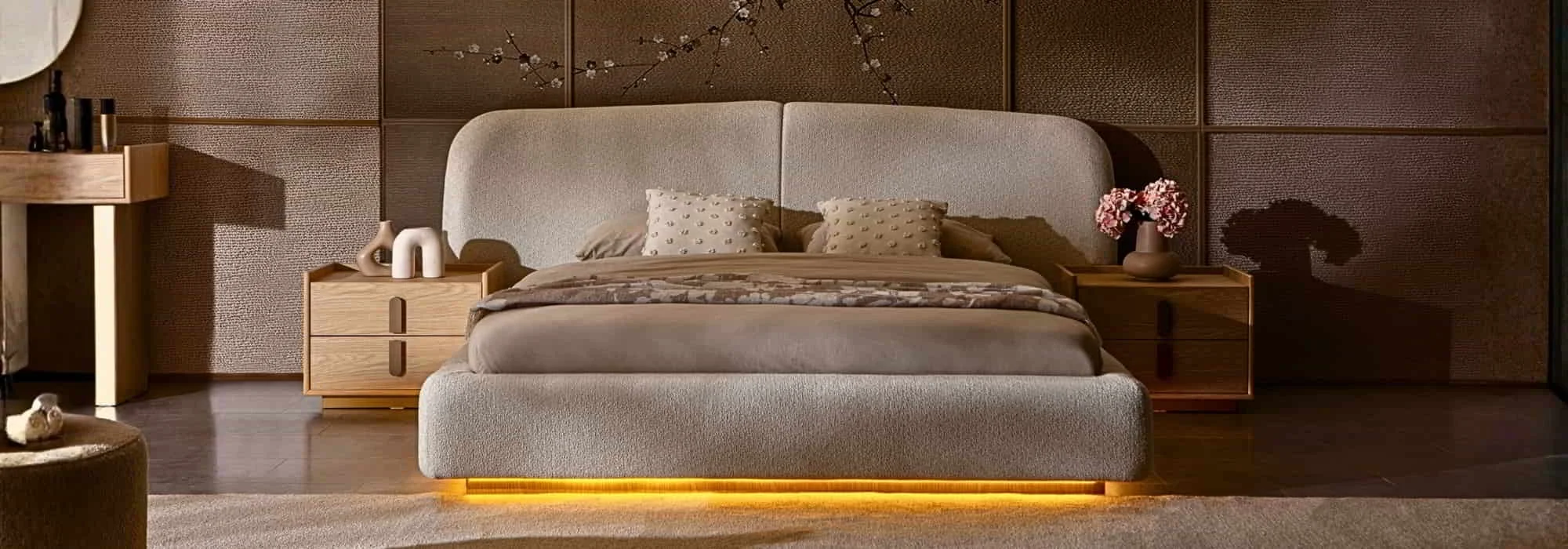 Yatak ve Başlık Tasarımları: Yumuşak dolgulu büyük başlıklar, hem estetik hem de konfor açısından popülerliğini artırmıştır. Yatağa yaslanarak kitap okumak veya televizyon izlemek için ideal bir destek sağlar.